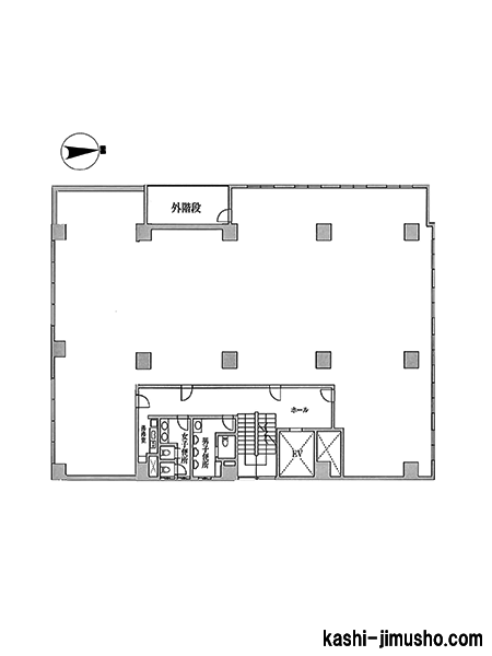 大通りに面した貸事務所!開放感があります!石張りのエントランスは清潔感があります!トイレは、室外で男女別になっています!